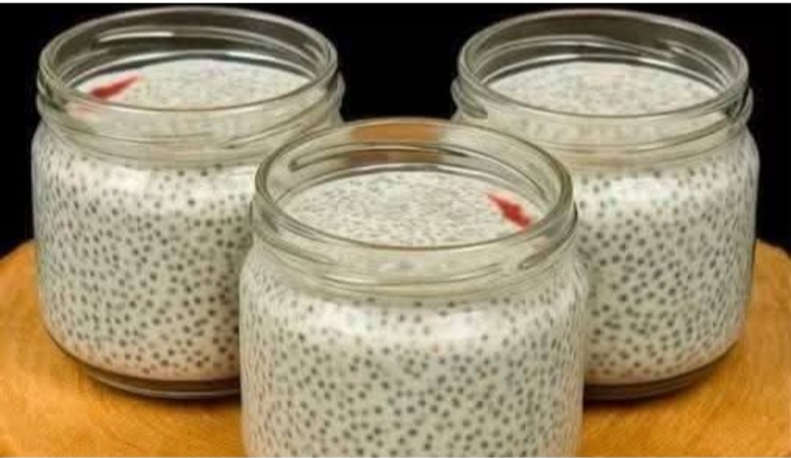 - Add chia seeds to a bowl or jar.